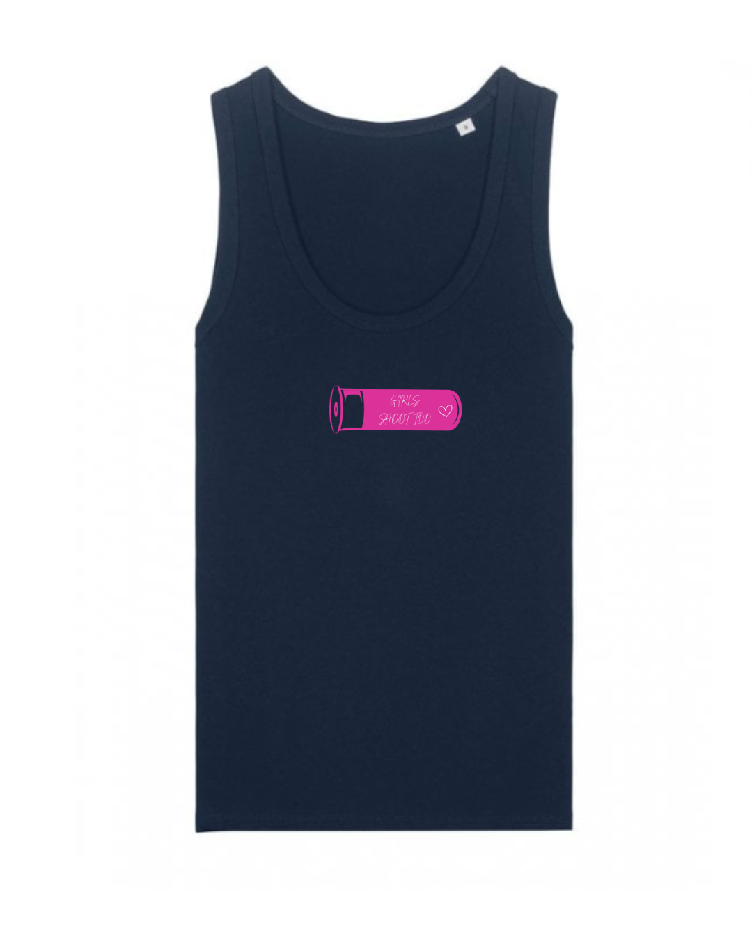 Make a statement at the clay ground or out and about on the shoot with this stylish, comfortable ladies vest top. Crafted from premium-quality cotton, it features a flattering feminine fit with a classic scoop neckline. The standout detail is the bold pink shotgun shell graphic on the chest with the words “GIRLS SHOOT TOO”, making it the perfect choice for women who love shooting sports and want to show it off with pride.